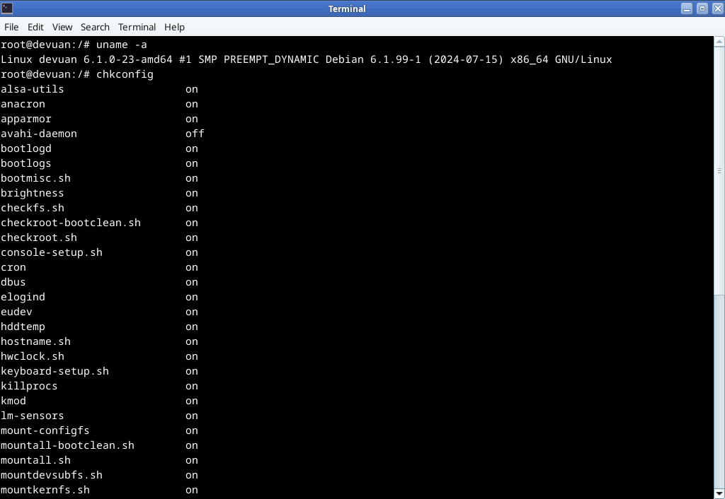| Guest5159 | here it is a terminal shot from the tool https://i.postimg.cc/qqd4fVSS/Terminal-001.png and here it is the debian repository where this tool still exist http://archive.debian.org/debian/pool/main/c/chkconfig/ | 00:12 |